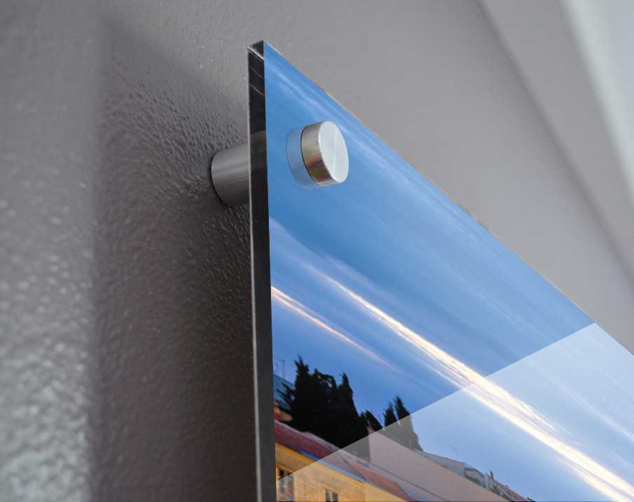Printed to the edge - Ready to hang - provided with 4 premium polished aluminum stand off ( wall screws and mounting hardware provided )