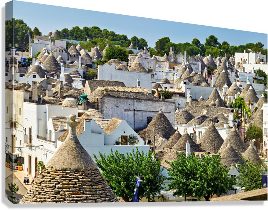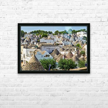 Apulia Puglia Italy. Alberobello. Trulli: traditional Apulian dry stone huts with a conical roof. Picture Frame Printing