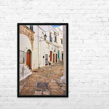 Apulia Puglia Italy. Ostuni. The white town. The narrow alleys of the old town Picture Frame Printing