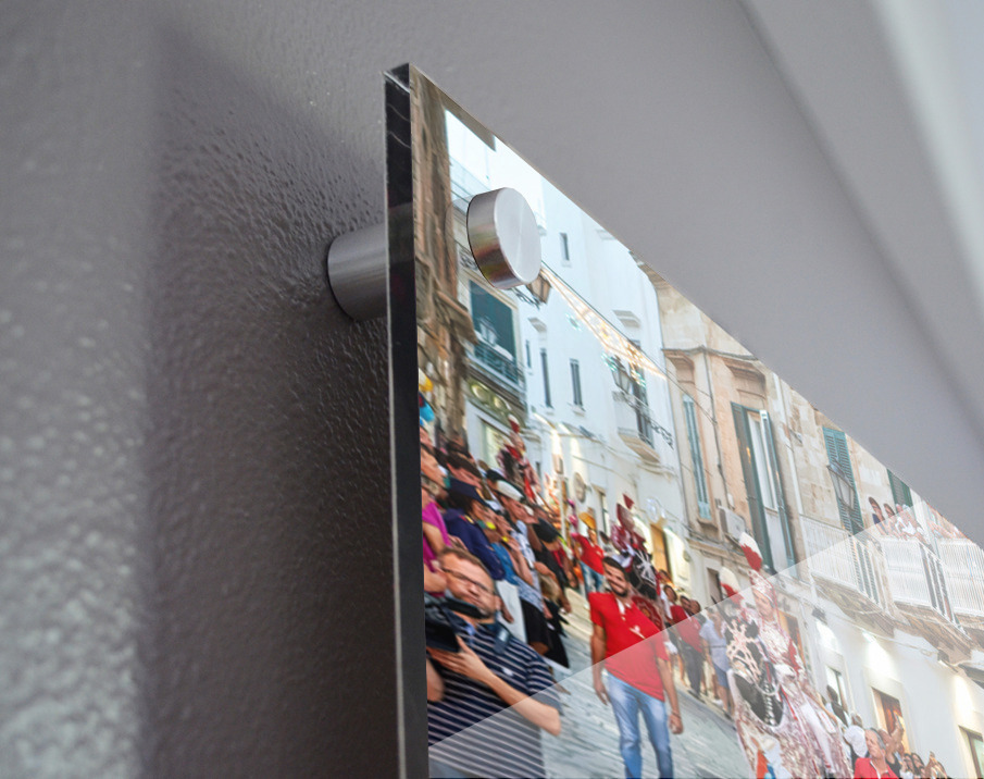 Printed to the edge - Ready to hang - provided with 4 premium polished aluminum stand off ( wall screws and mounting hardware provided )