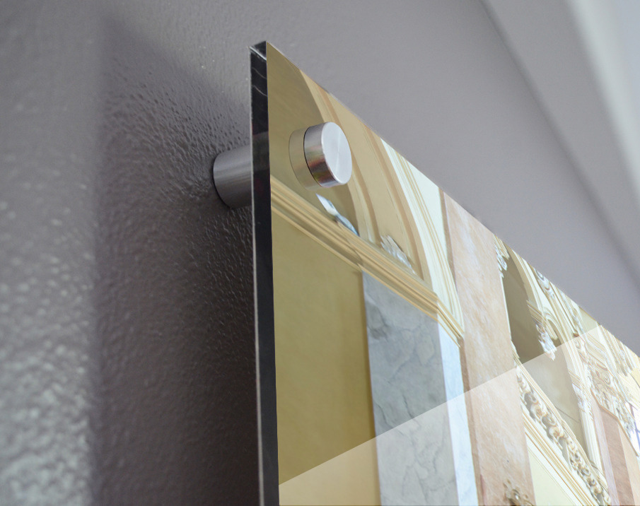 Printed to the edge - Ready to hang - provided with 4 premium polished aluminum stand off ( wall screws and mounting hardware provided )
