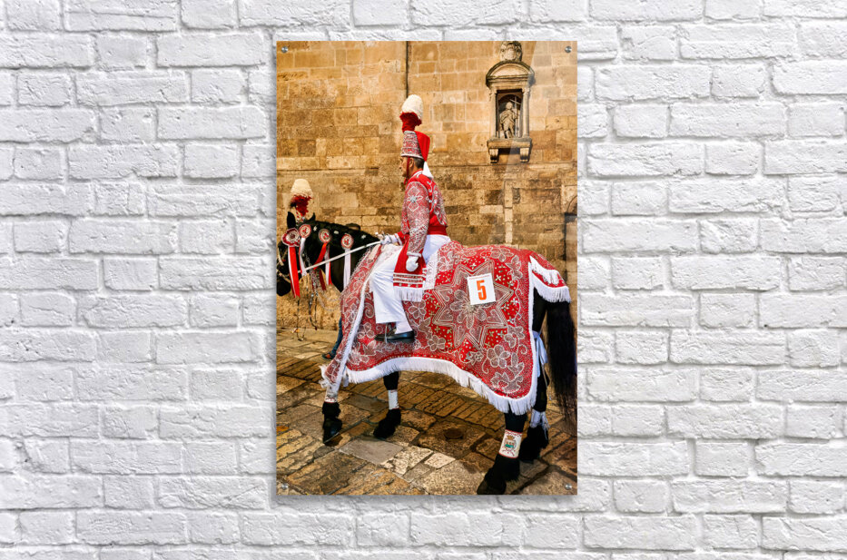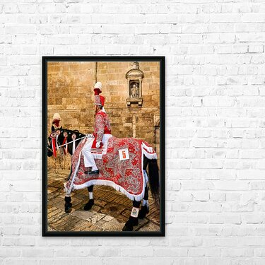 Get this artwork "Apulia Puglia Italy. Ostuni. Festival of Saint Orontius. The cavalcata a procession of horses in the streets of the town" in a framed print.
