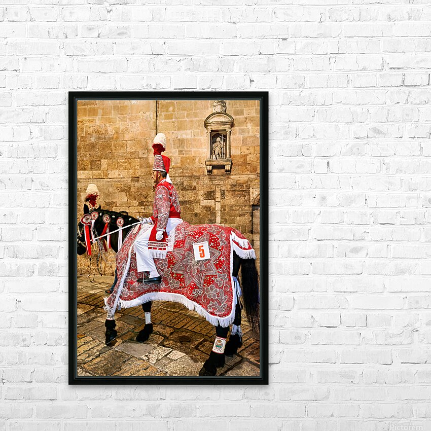 Apulia Puglia Italy. Ostuni. Festival of Saint Orontius. The cavalcata a procession of horses in the streets of the town Picture Frame Printing