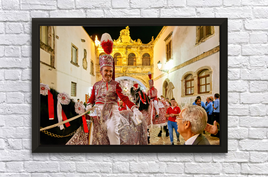 ABOUT THIS ARTWORK: APULIA PUGLIA ITALY. OSTUNI. FESTIVAL OF SAINT ORONTIUS. THE CAVALCATA A PROCESSION OF HORSES IN THE STREETS OF THE TOWN