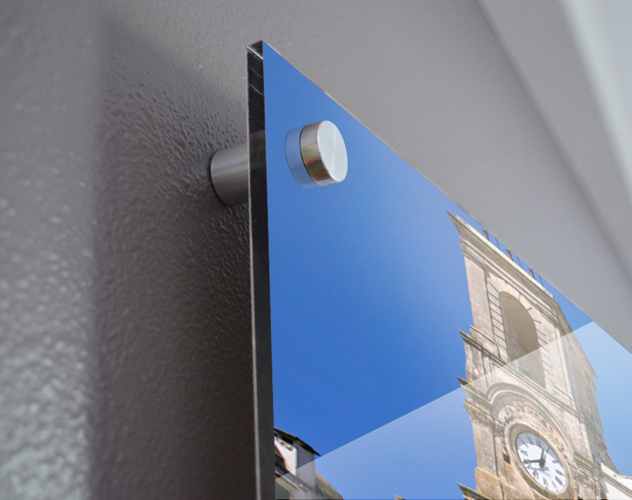 Printed to the edge - Ready to hang - provided with 4 premium polished aluminum stand off ( wall screws and mounting hardware provided )
