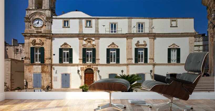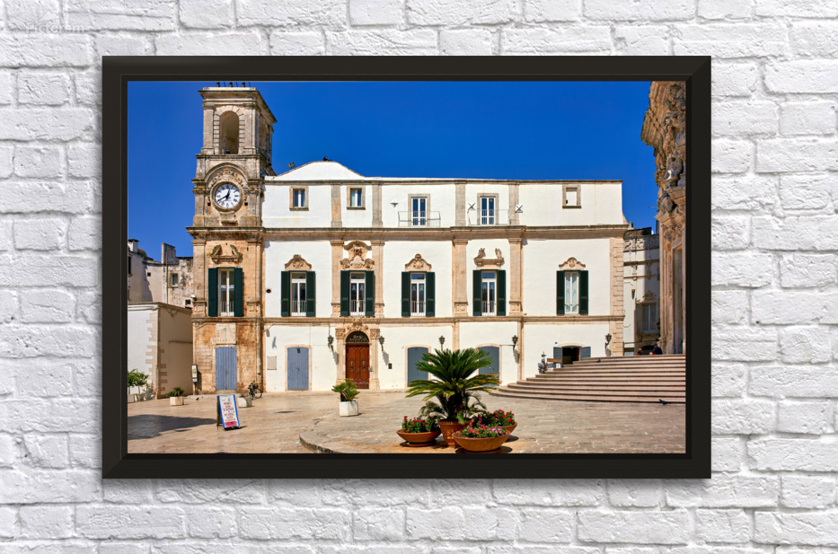"Apulia Puglia Italy. Martina Franca. Piazza Plebiscito and the Cathedral. Basilica S. Martino" in a framed print.