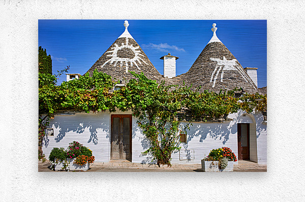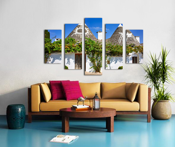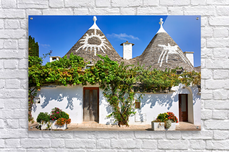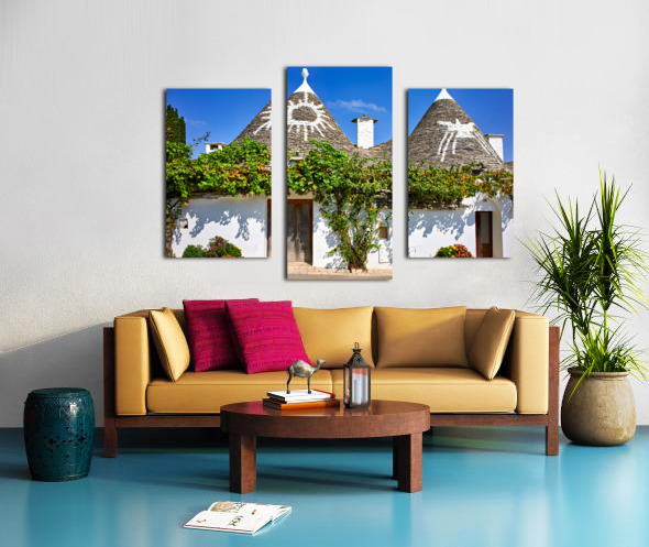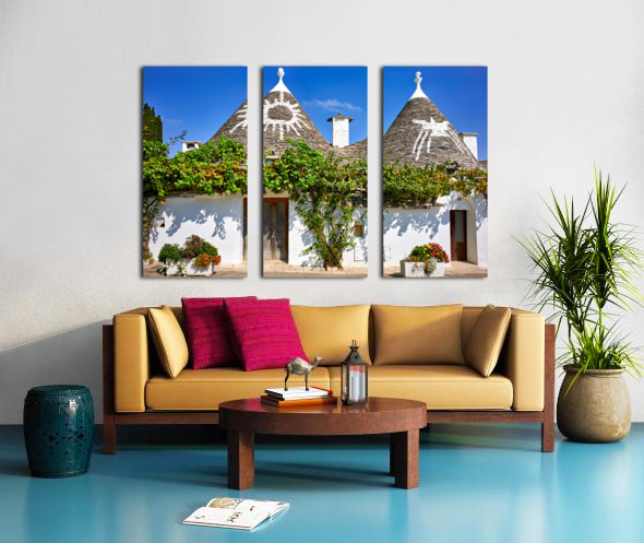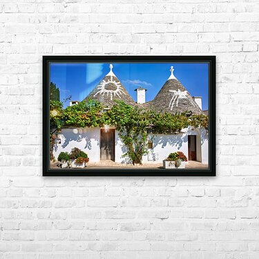 Apulia Puglia Italy. Alberobello. Trulli: traditional Apulian dry stone huts with a conical roof. Picture Frame Printing