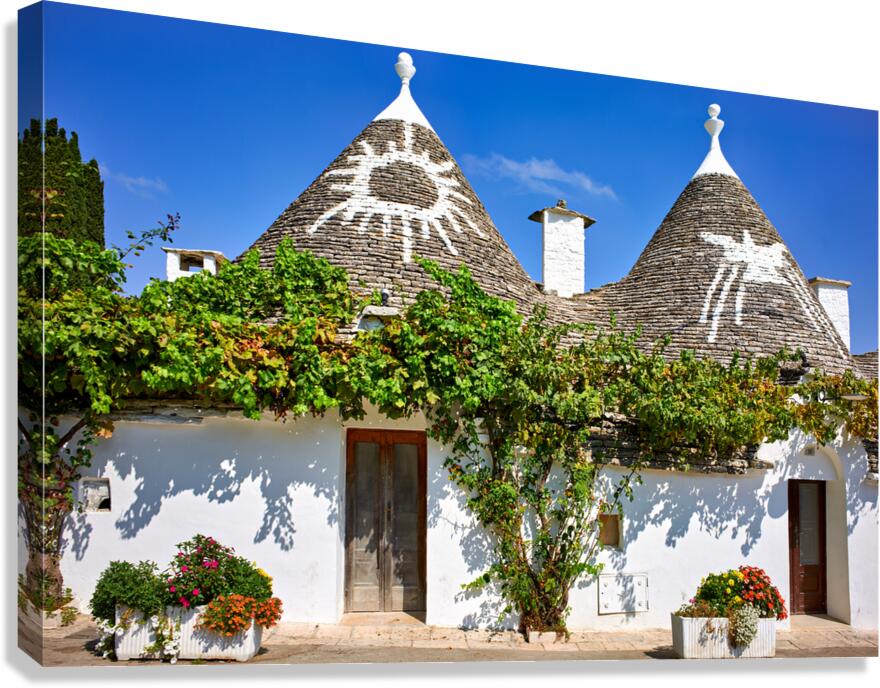 Get this artwork "Apulia Puglia Italy. Alberobello. Trulli: traditional Apulian dry stone huts with a conical roof." in a framed print.