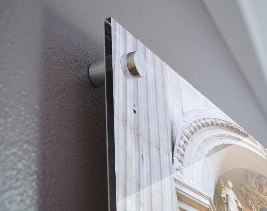 Printed to the edge - Ready to hang - provided with 4 premium polished aluminum stand off ( wall screws and mounting hardware provided )