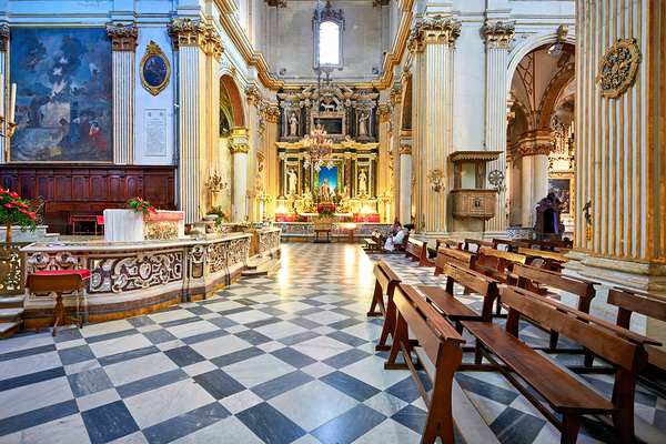 "Apulia Puglia Salento Italy. Lecce. Cathedral Maria Santissima Assunta and Saint Orontius" in a framed print.