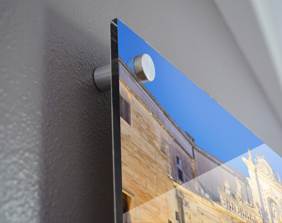 Printed to the edge - Ready to hang - provided with 4 premium polished aluminum stand off ( wall screws and mounting hardware provided )