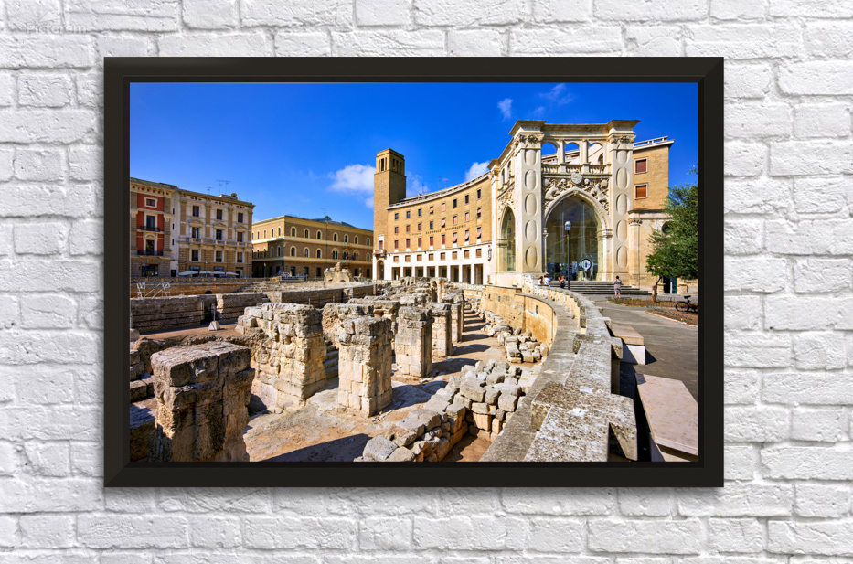 "Apulia Puglia Salento Italy. Lecce. The Roman amphitheatre" in a framed print.