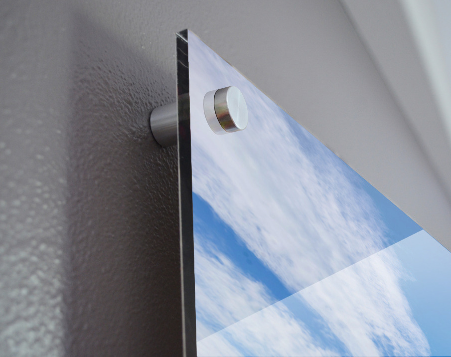 Printed to the edge - Ready to hang - provided with 4 premium polished aluminum stand off ( wall screws and mounting hardware provided )