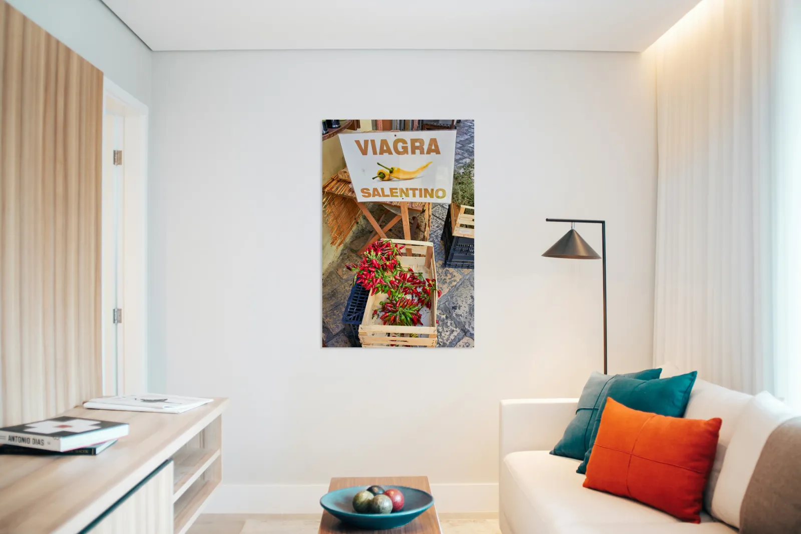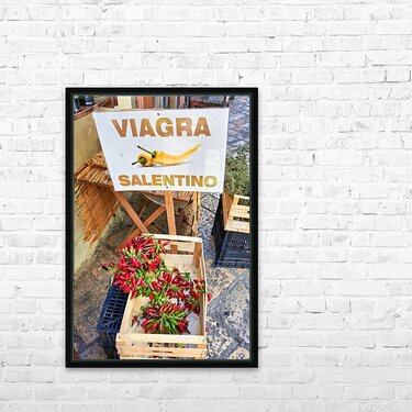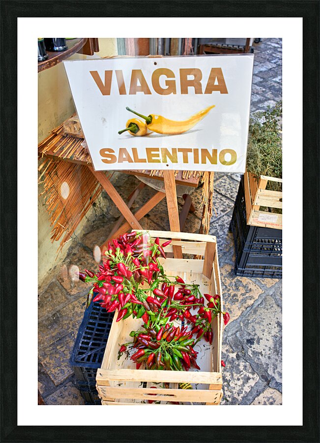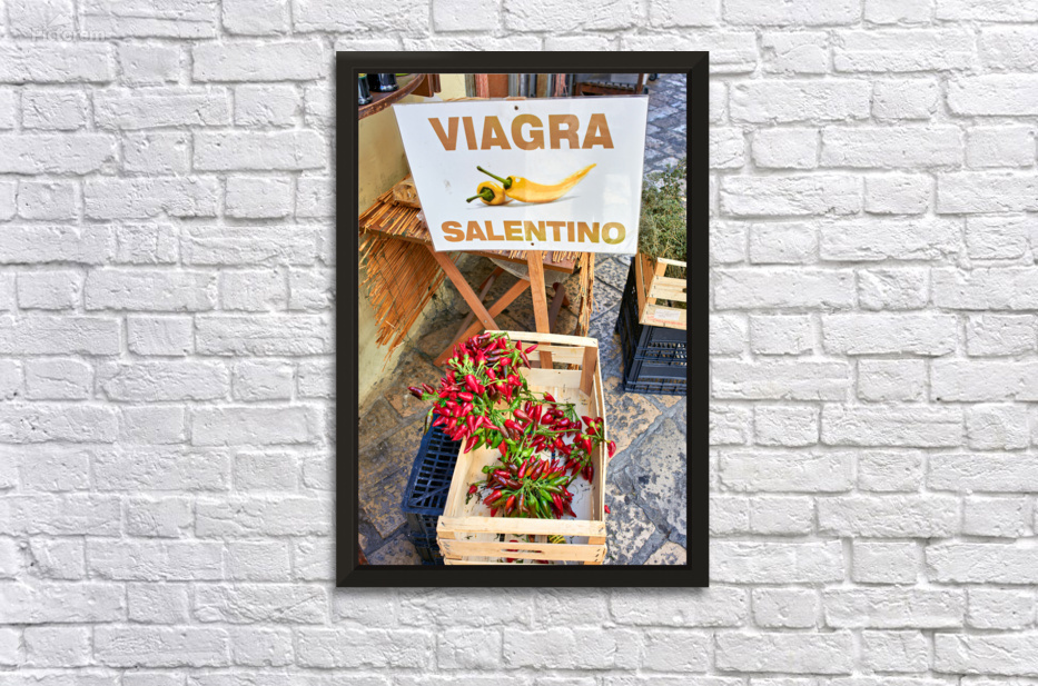 "Salento. Apulia Puglia Italy. Gallipoli. Dried red chili natural Viagra" in a framed print.