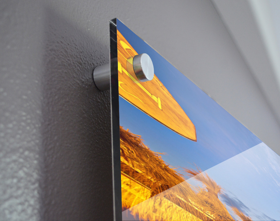 Printed to the edge - Ready to hang - provided with 4 premium polished aluminum stand off ( wall screws and mounting hardware provided )