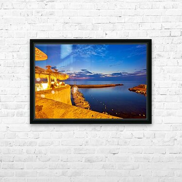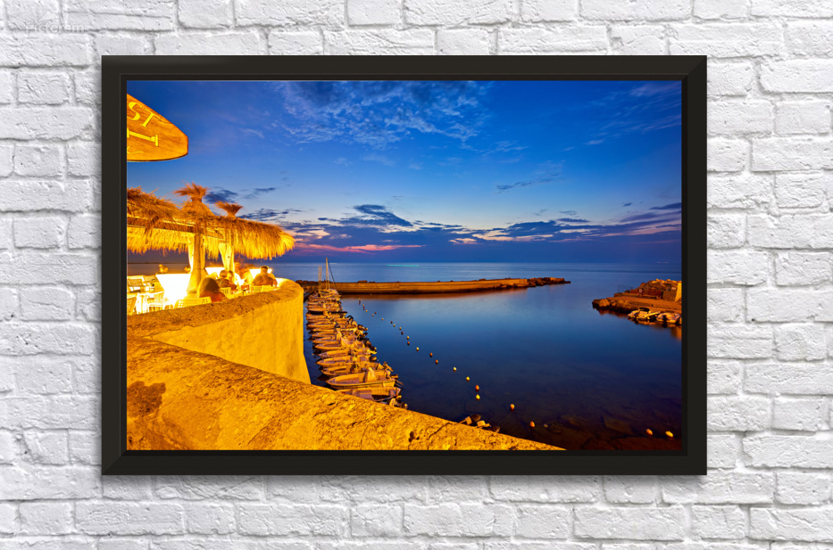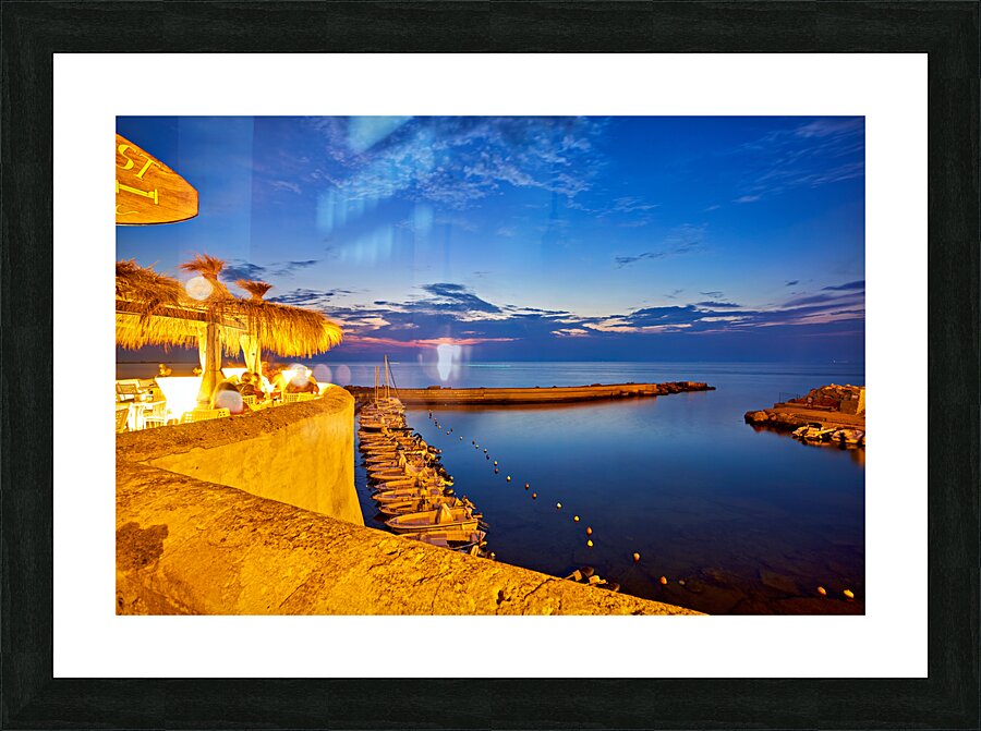 "Salento. Apulia Puglia Italy. Gallipoli. Aperitif on the waterfront at sunset." in a framed print.