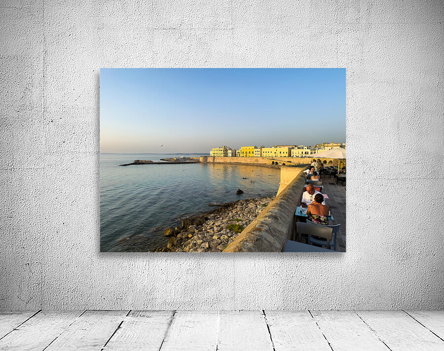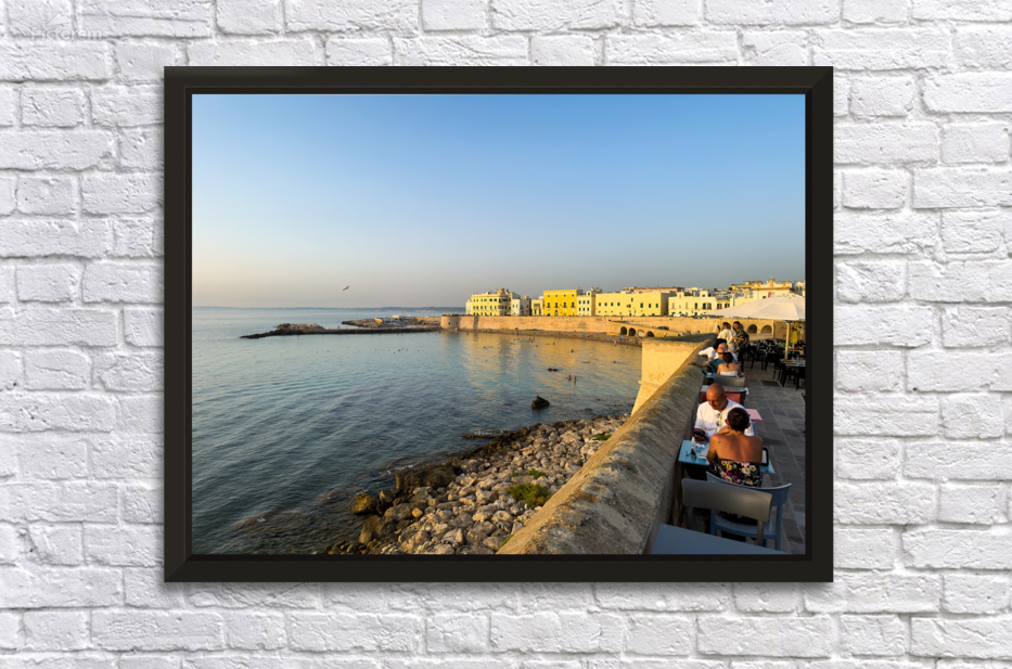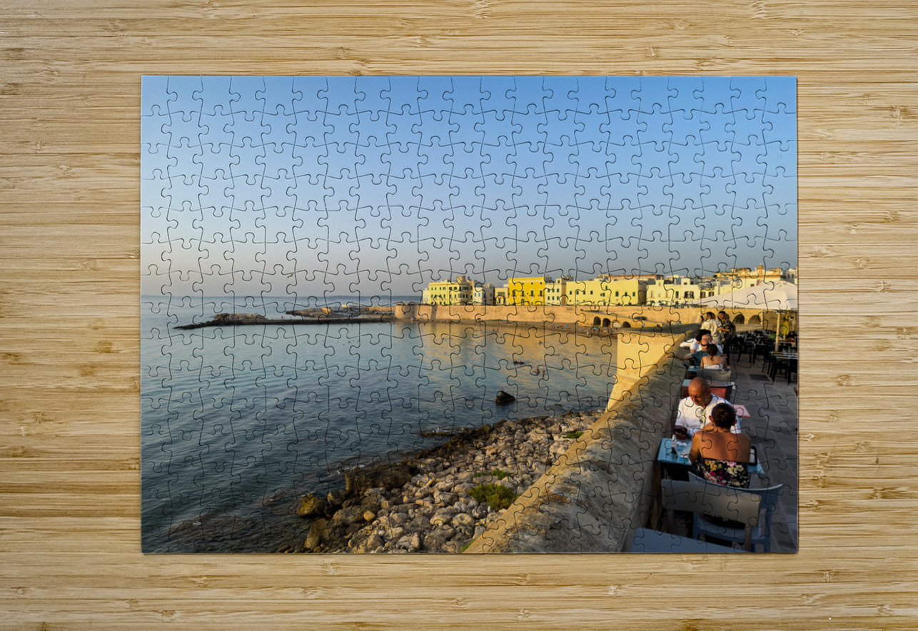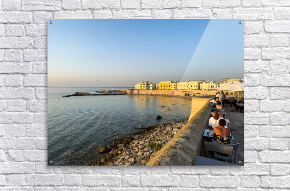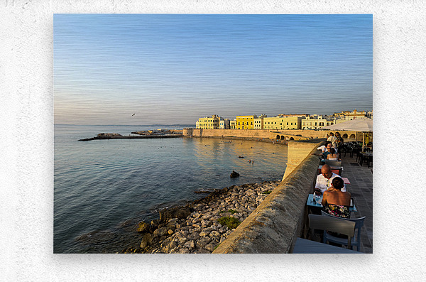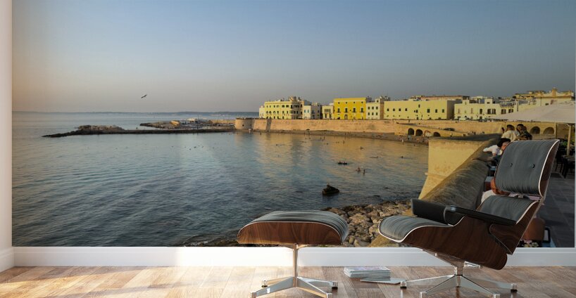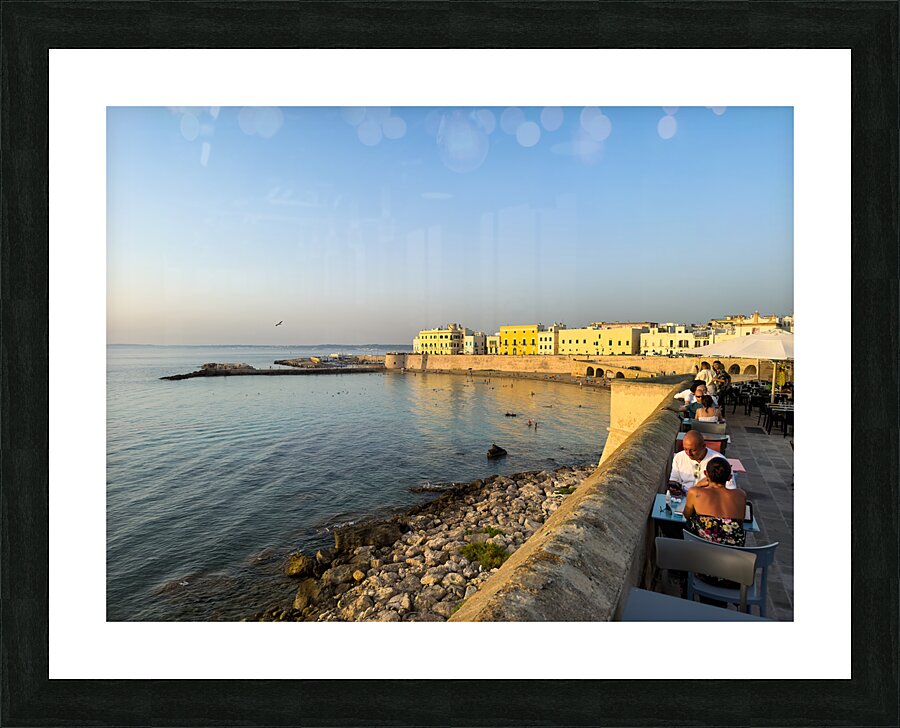 Gallipoli Puglia Salento Italy. Aperitif ay sunset at the town walls
