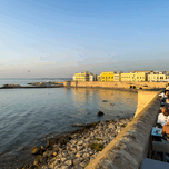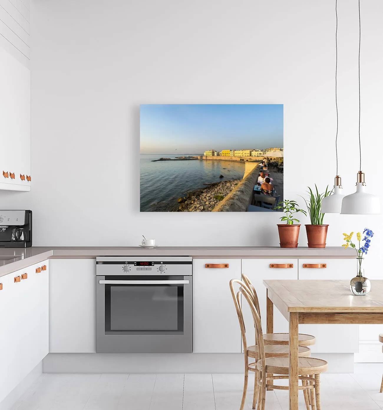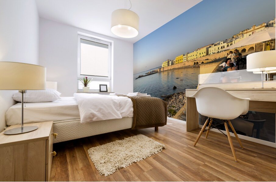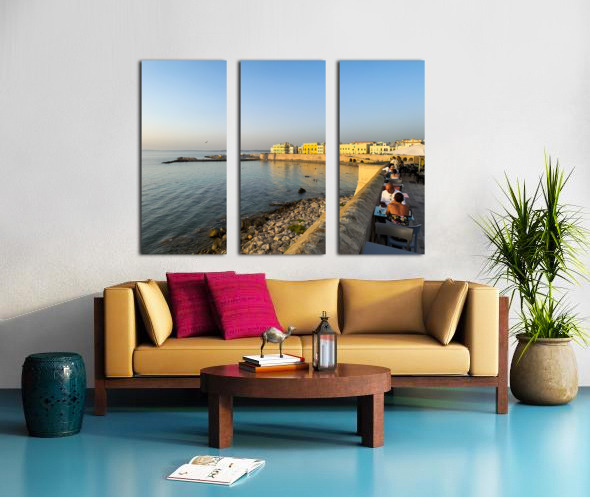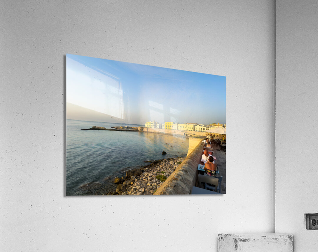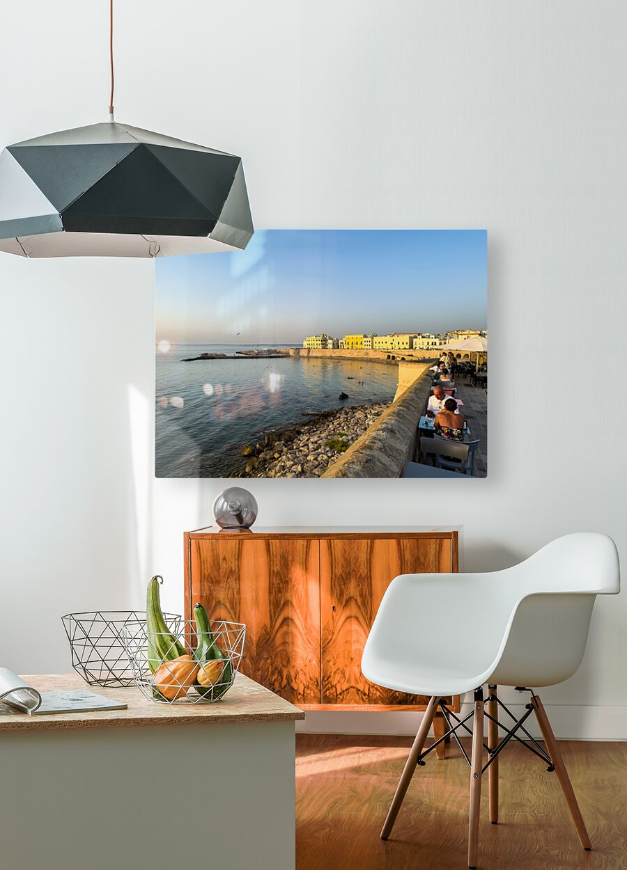 Gallipoli Puglia Salento Italy. Aperitif ay sunset at the town walls