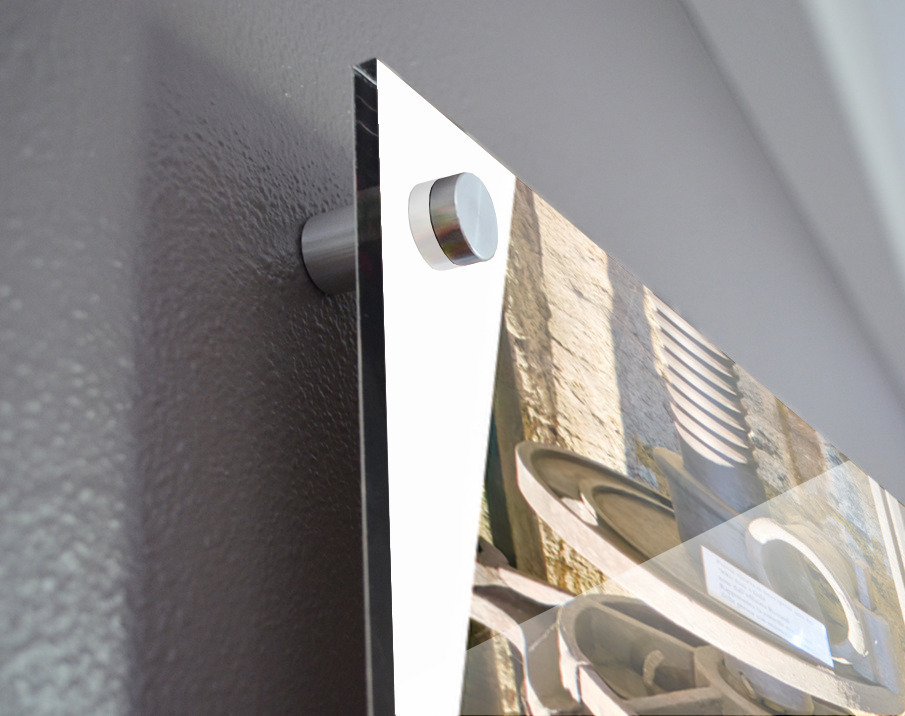 Printed to the edge - Ready to hang - provided with 4 premium polished aluminum stand off ( wall screws and mounting hardware provided )