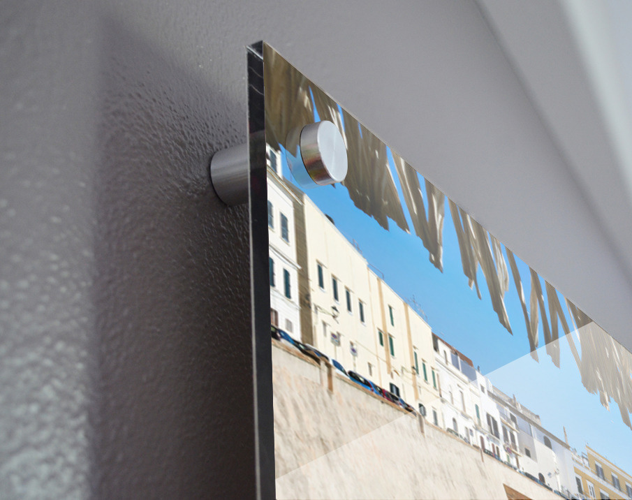 Printed to the edge - Ready to hang - provided with 4 premium polished aluminum stand off ( wall screws and mounting hardware provided )