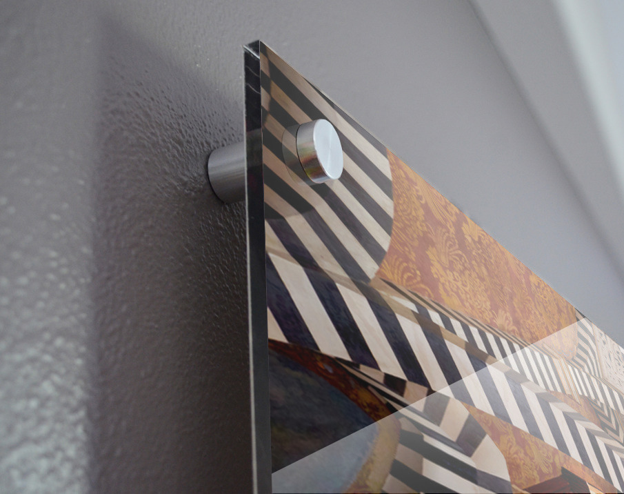 Printed to the edge - Ready to hang - provided with 4 premium polished aluminum stand off ( wall screws and mounting hardware provided )