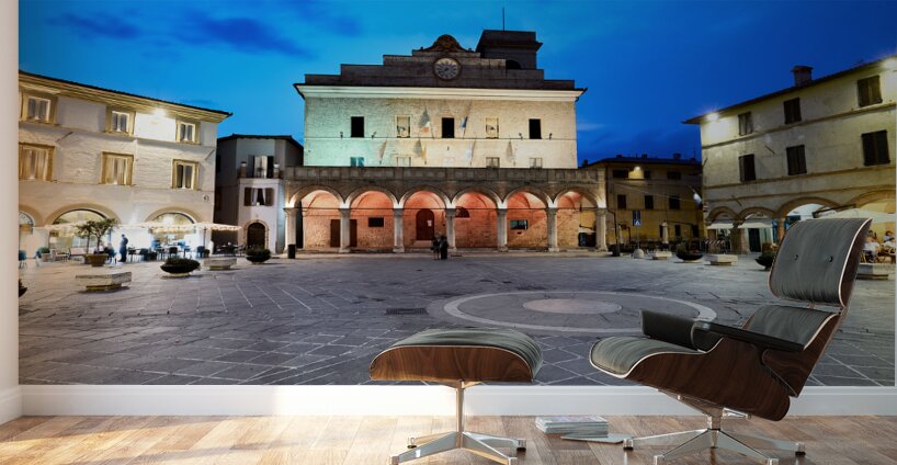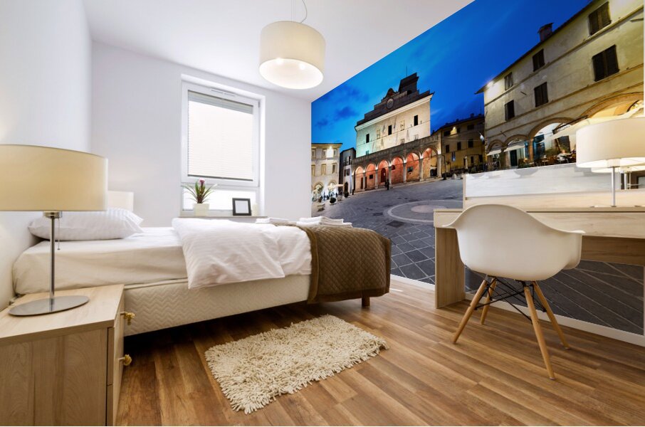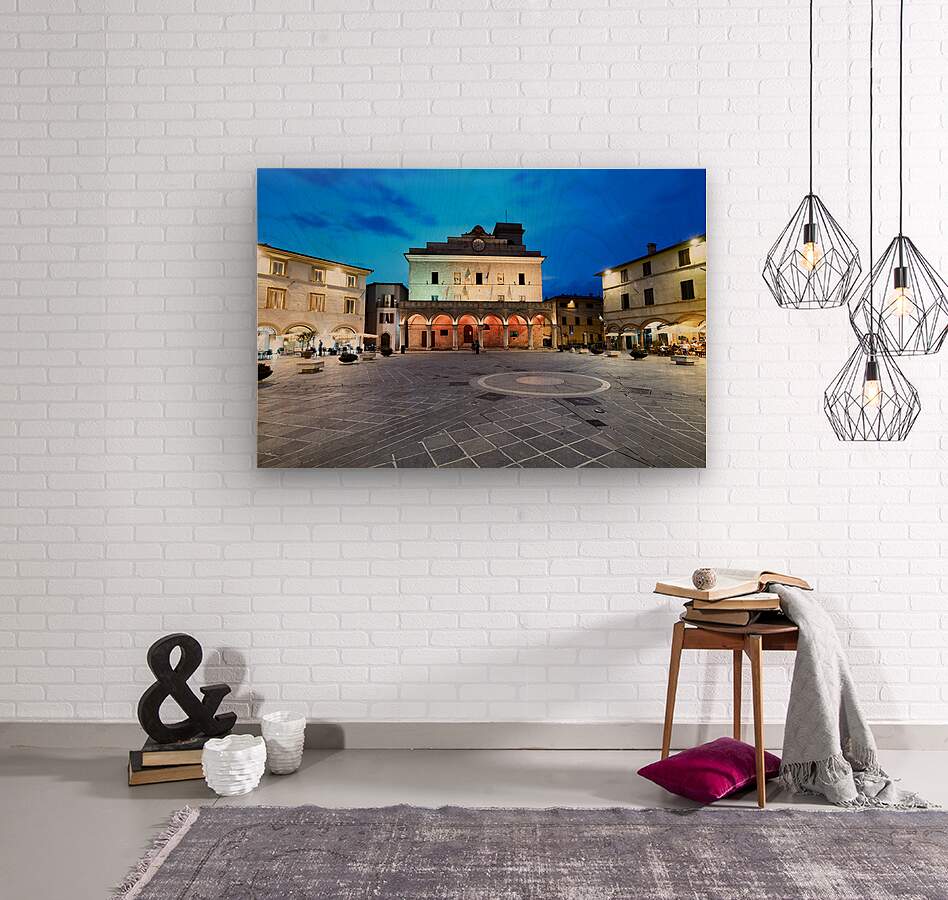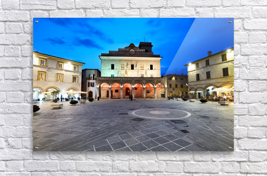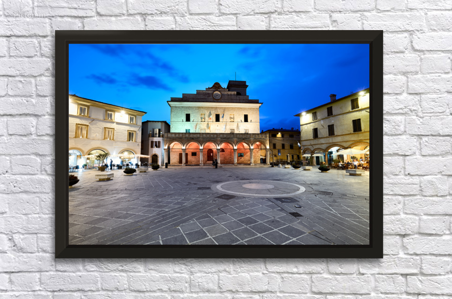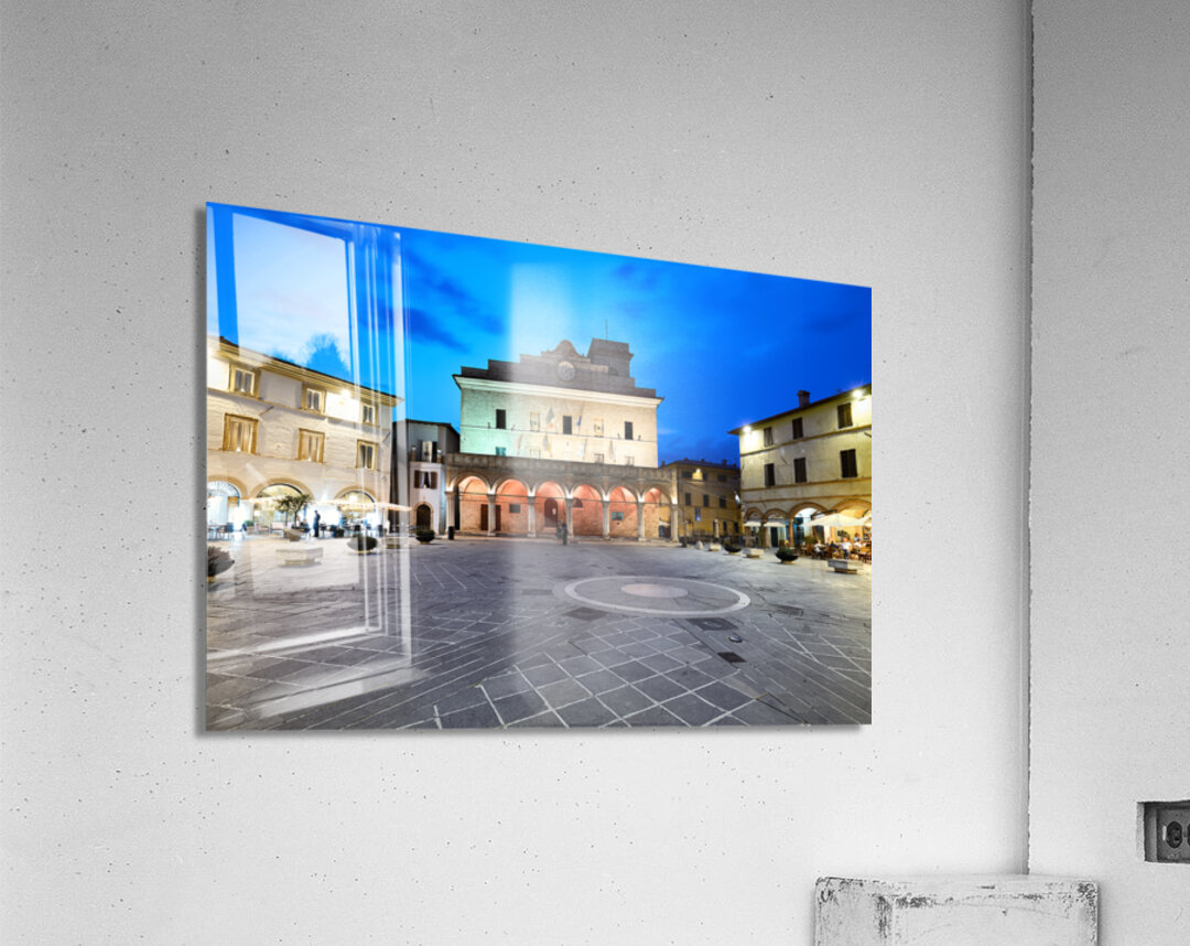Montefalco Umbria Italy. Piazza del Comune at sunset