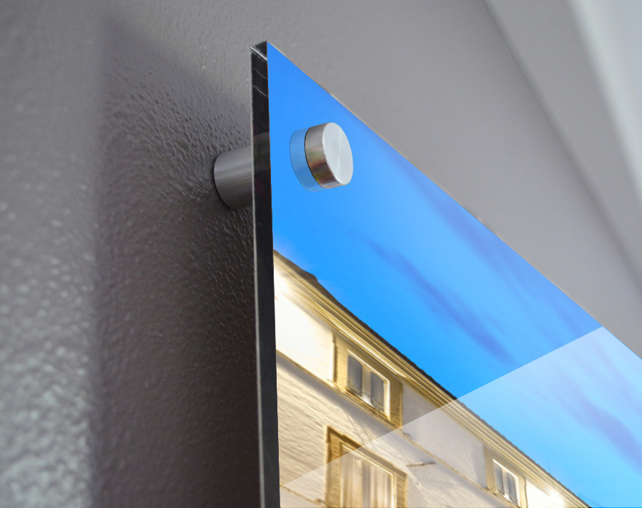 Printed to the edge - Ready to hang - provided with 4 premium polished aluminum stand off ( wall screws and mounting hardware provided )