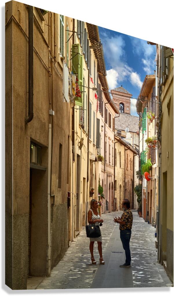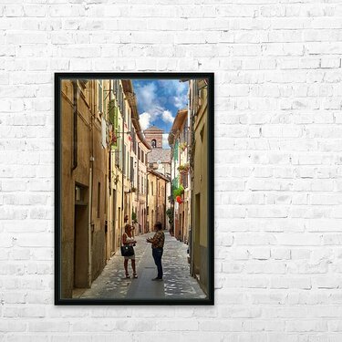 Get this artwork "Foligno Umbria Italy. Talking in the alleys of the old town" in a framed print.