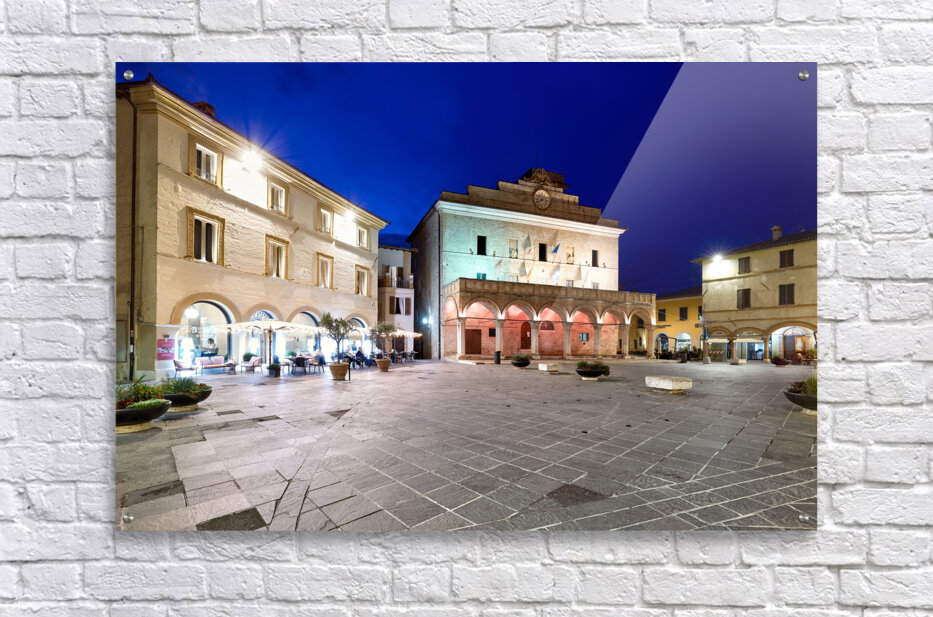 Get this artwork "Montefalco Umbria Italy. Piazza del Comune at sunset" in a framed print.