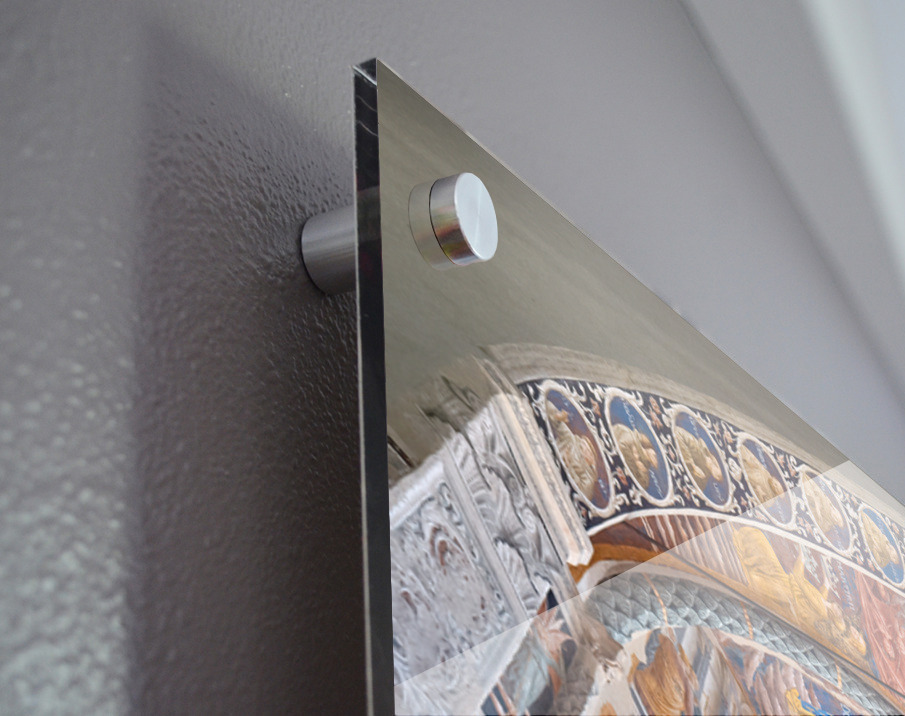 Printed to the edge - Ready to hang - provided with 4 premium polished aluminum stand off ( wall screws and mounting hardware provided )
