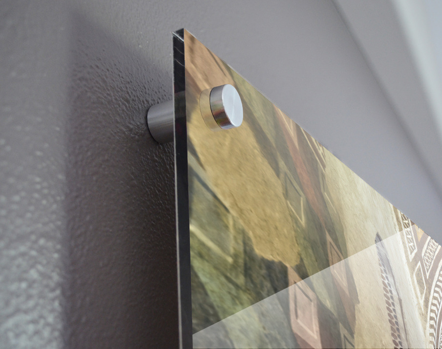 Printed to the edge - Ready to hang - provided with 4 premium polished aluminum stand off ( wall screws and mounting hardware provided )