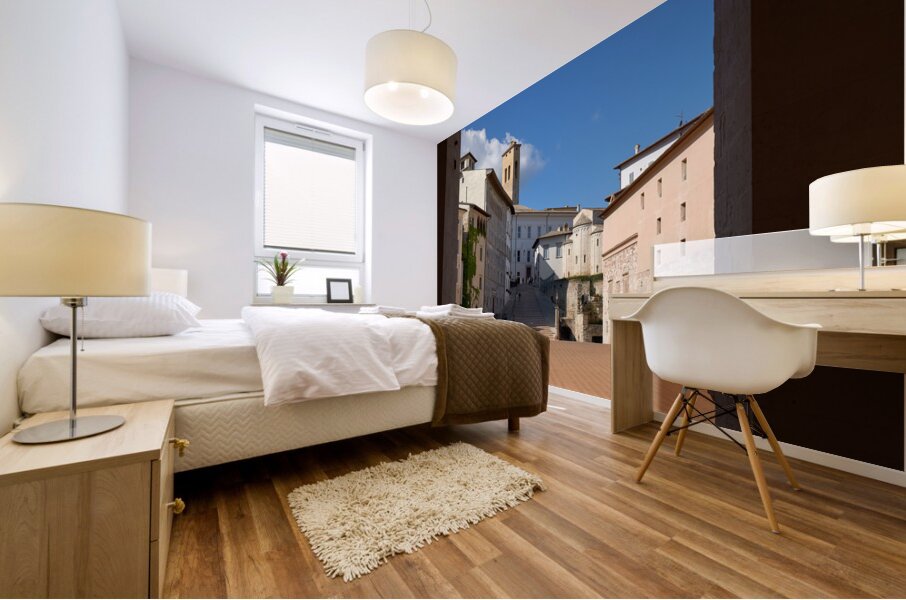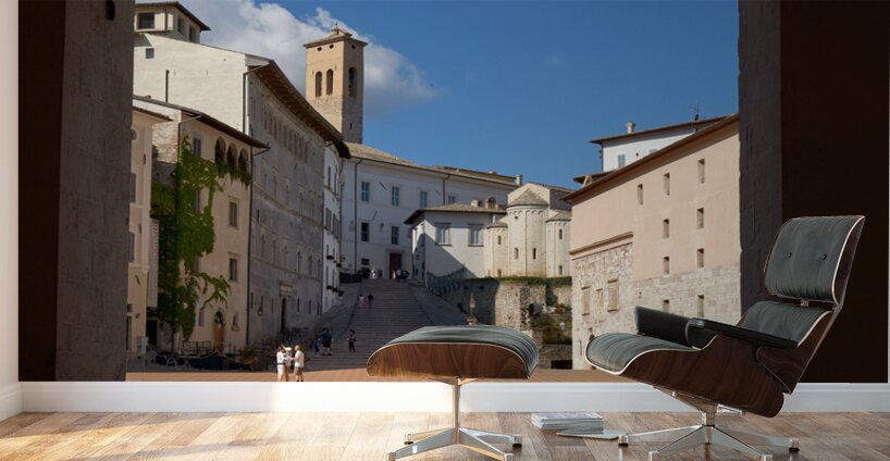 Spoleto Umbria Italy. Piazza del Duomo the theatre and Chiesa di SantEufemia