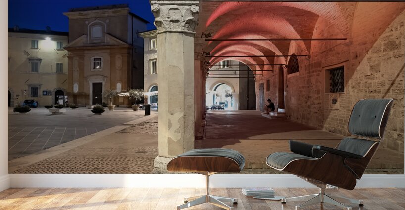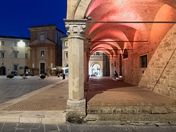 Montefalco Umbria Italy. Piazza del Comune town hall square