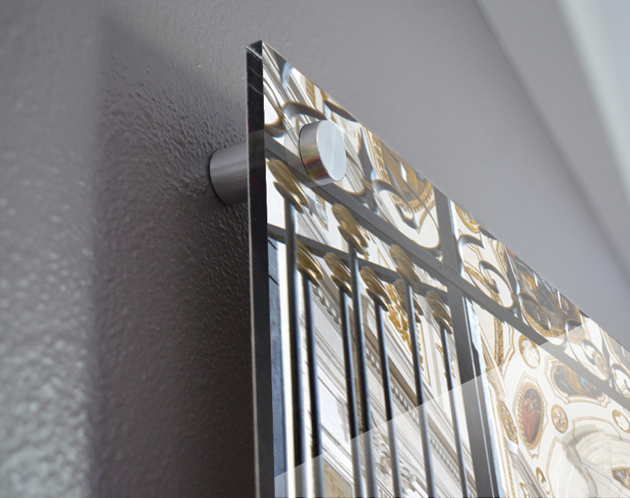 Printed to the edge - Ready to hang - provided with 4 premium polished aluminum stand off ( wall screws and mounting hardware provided )