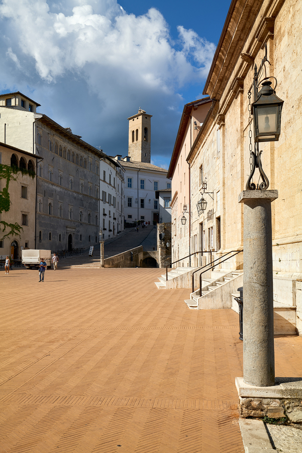 Spoleto Umbria Italy. Piazza del Duomo the theatre and Chiesa di SantEufemia