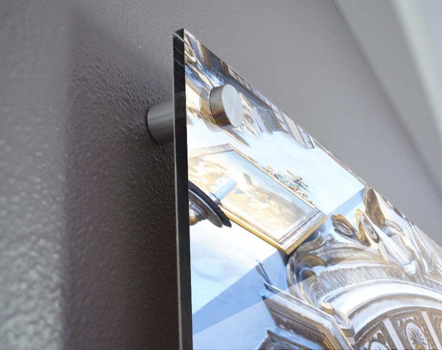 Printed to the edge - Ready to hang - provided with 4 premium polished aluminum stand off ( wall screws and mounting hardware provided )