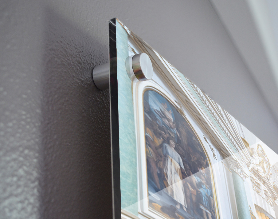 Printed to the edge - Ready to hang - provided with 4 premium polished aluminum stand off ( wall screws and mounting hardware provided )