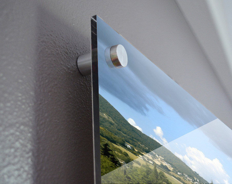 Printed to the edge - Ready to hang - provided with 4 premium polished aluminum stand off ( wall screws and mounting hardware provided )