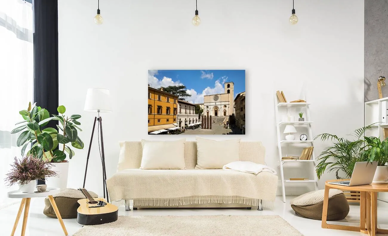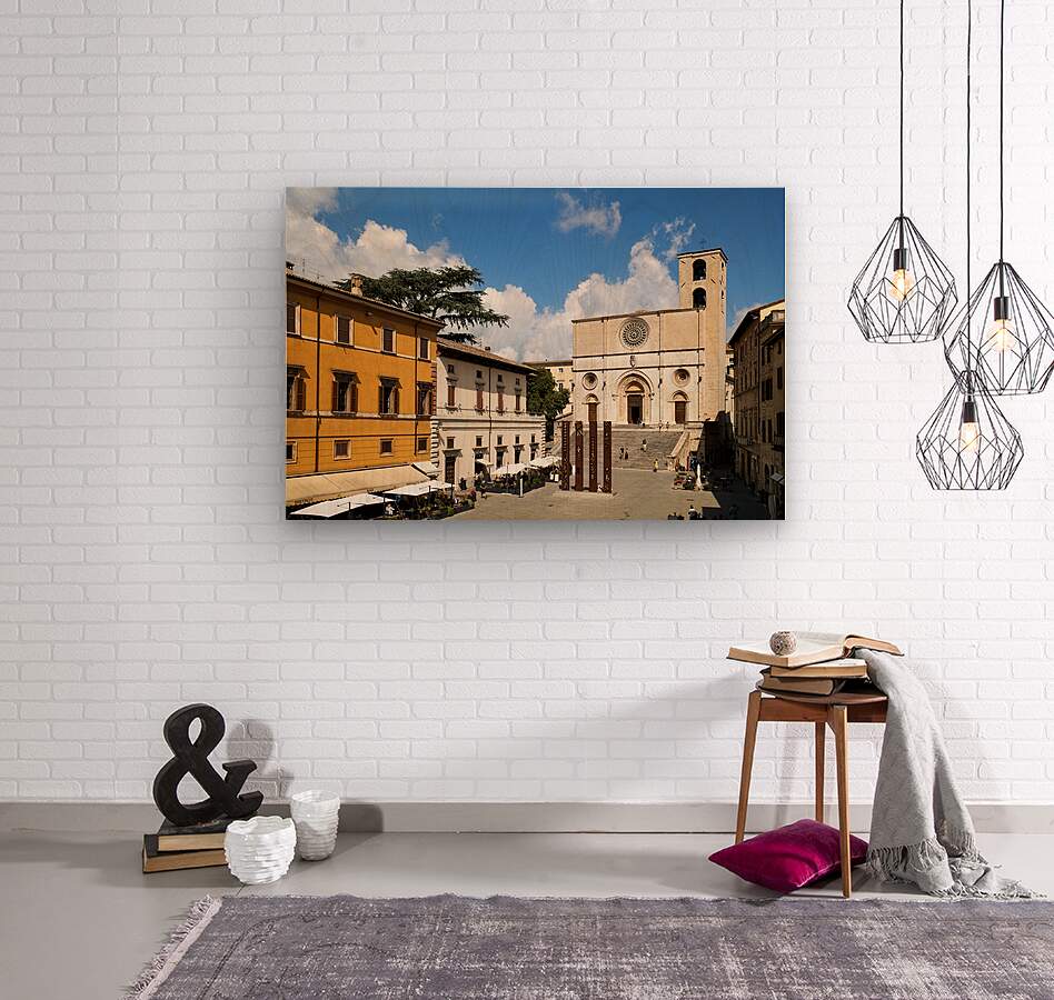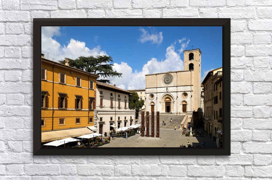 Todi Umbria Italy. Concattedrale della Santissima Annunziata. Cathedral. Piazza del Popolo. The statue Quattro Stele by Arnaldo Pomodoro