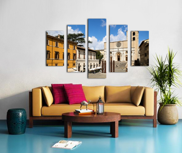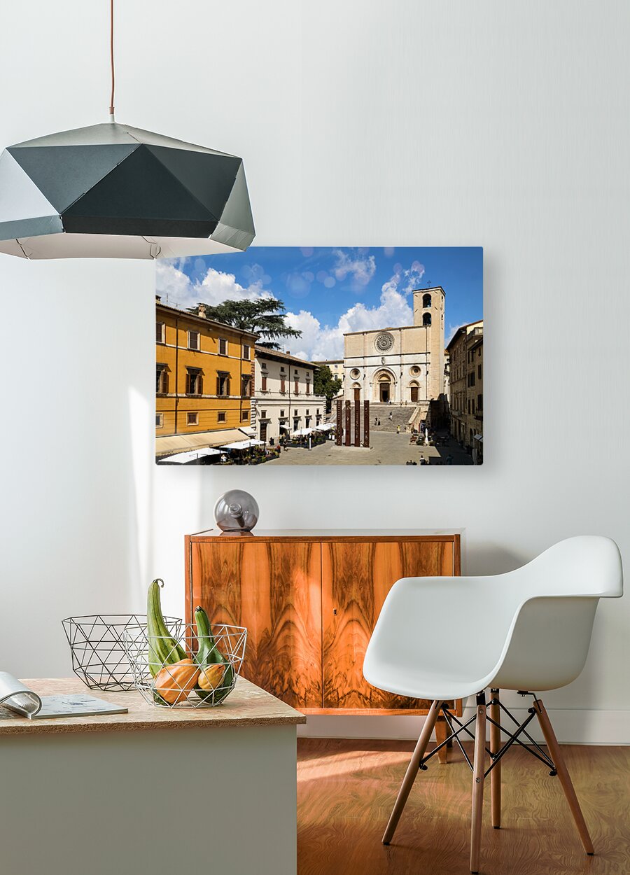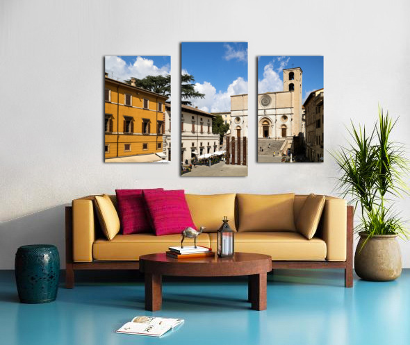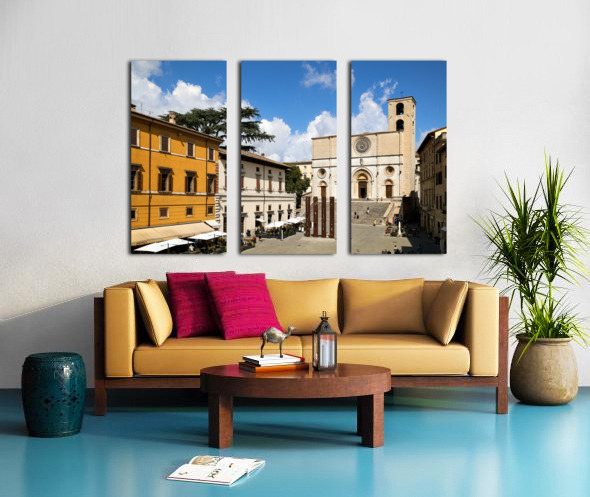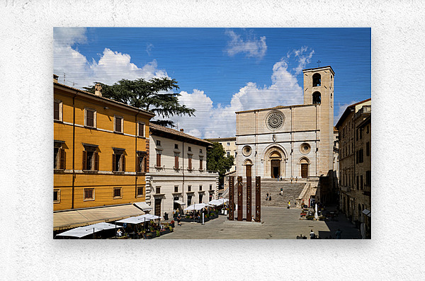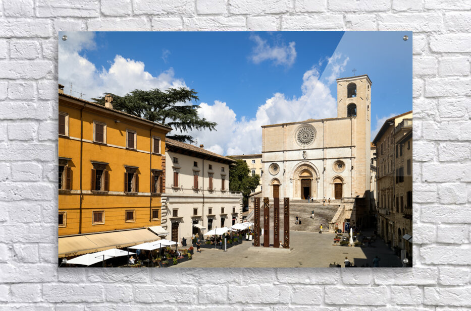 Get this artwork "Todi Umbria Italy. Concattedrale della Santissima Annunziata. Cathedral. Piazza del Popolo. The statue Quattro Stele by Arnaldo Pomodoro" in a framed print.