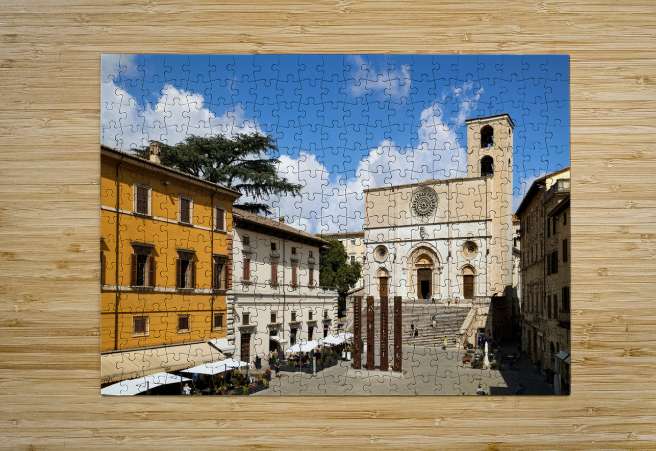 Todi Umbria Italy. Concattedrale della Santissima Annunziata. Cathedral. Piazza del Popolo. The statue Quattro Stele by Arnaldo Pomodoro Marco Brivio Puzzle printing