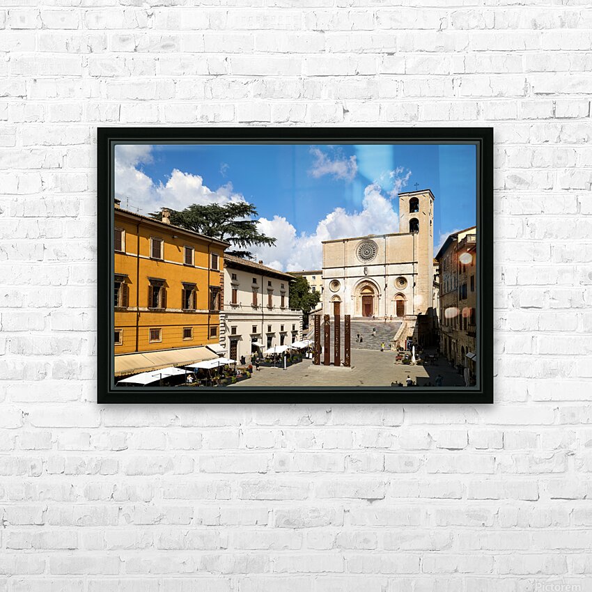 Todi Umbria Italy. Concattedrale della Santissima Annunziata. Cathedral. Piazza del Popolo. The statue Quattro Stele by Arnaldo Pomodoro Picture Frame Printing
