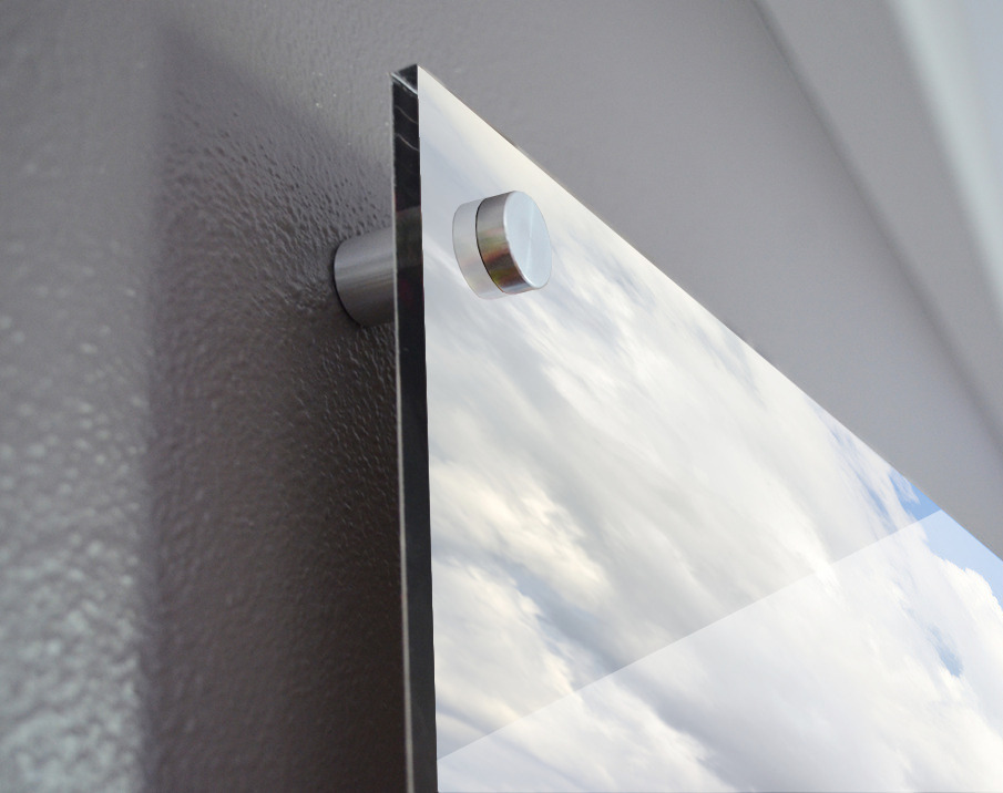Printed to the edge - Ready to hang - provided with 4 premium polished aluminum stand off ( wall screws and mounting hardware provided )