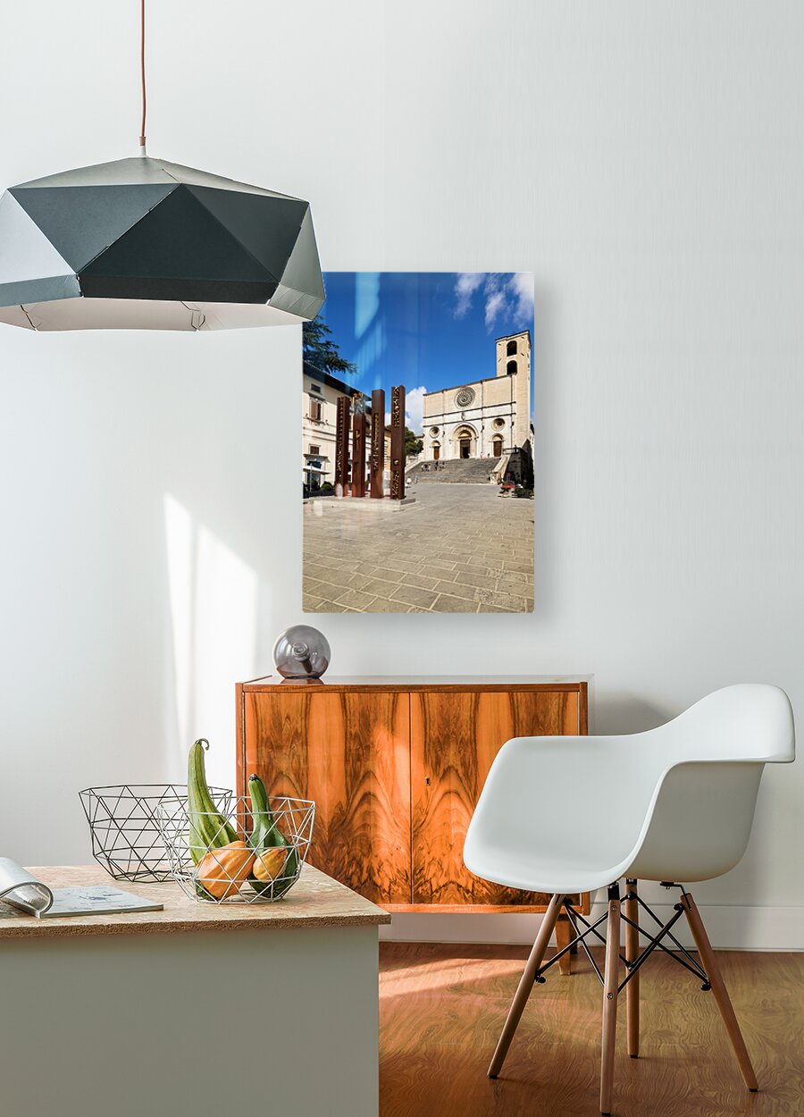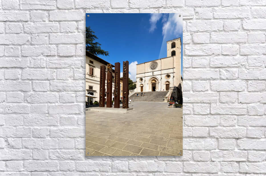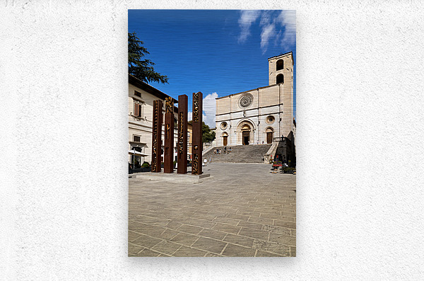 Get this artwork "Todi Umbria Italy. Concattedrale della Santissima Annunziata. Cathedral. Piazza del Popolo. The statue Quattro Stele by Arnaldo Pomodoro" in a framed print.
