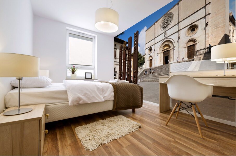ABOUT THIS ARTWORK: TODI UMBRIA ITALY. CONCATTEDRALE DELLA SANTISSIMA ANNUNZIATA. CATHEDRAL. PIAZZA DEL POPOLO. THE STATUE QUATTRO STELE BY ARNALDO POMODORO