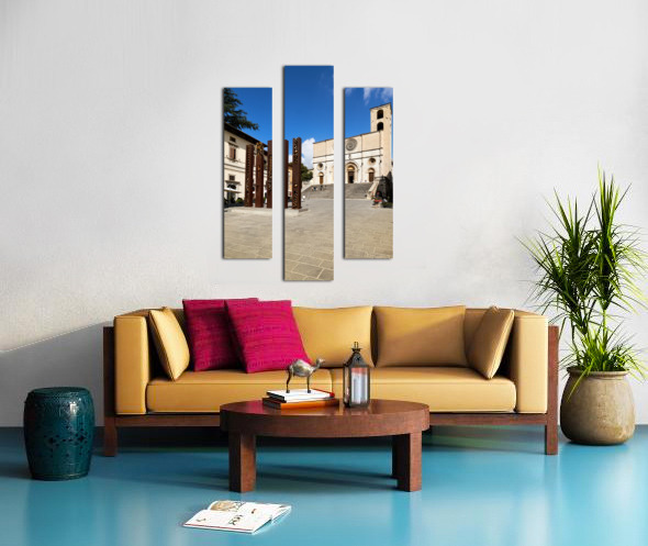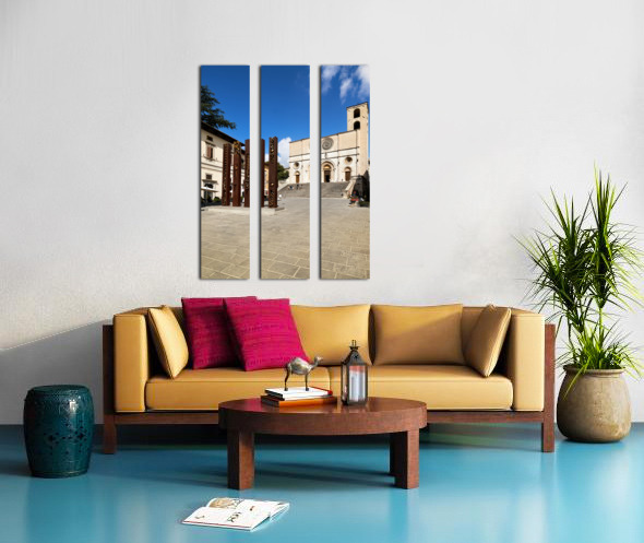 Todi Umbria Italy. Concattedrale della Santissima Annunziata. Cathedral. Piazza del Popolo. The statue Quattro Stele by Arnaldo Pomodoro Canvas print