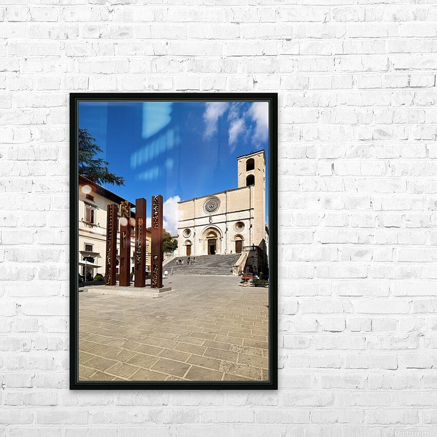 Todi Umbria Italy. Concattedrale della Santissima Annunziata. Cathedral. Piazza del Popolo. The statue Quattro Stele by Arnaldo Pomodoro Picture Frame Printing