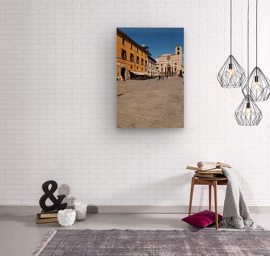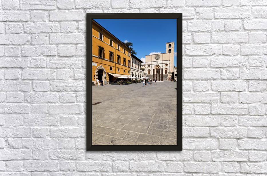 Todi Umbria Italy. Concattedrale della Santissima Annunziata. Cathedral. Piazza del Popolo. The statue Quattro Stele by Arnaldo Pomodoro