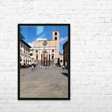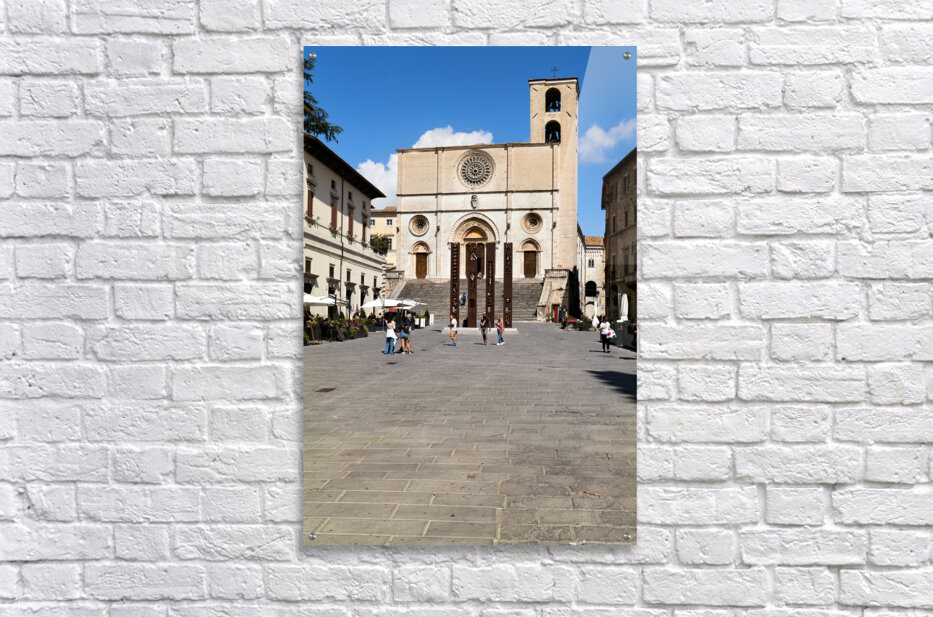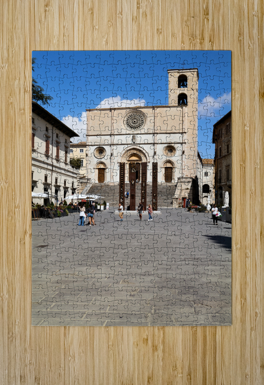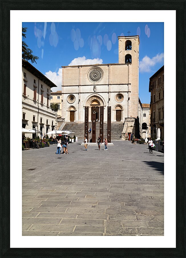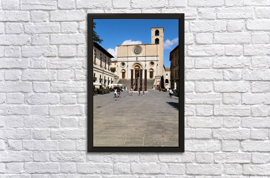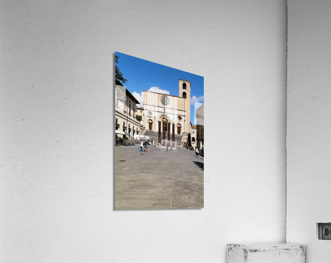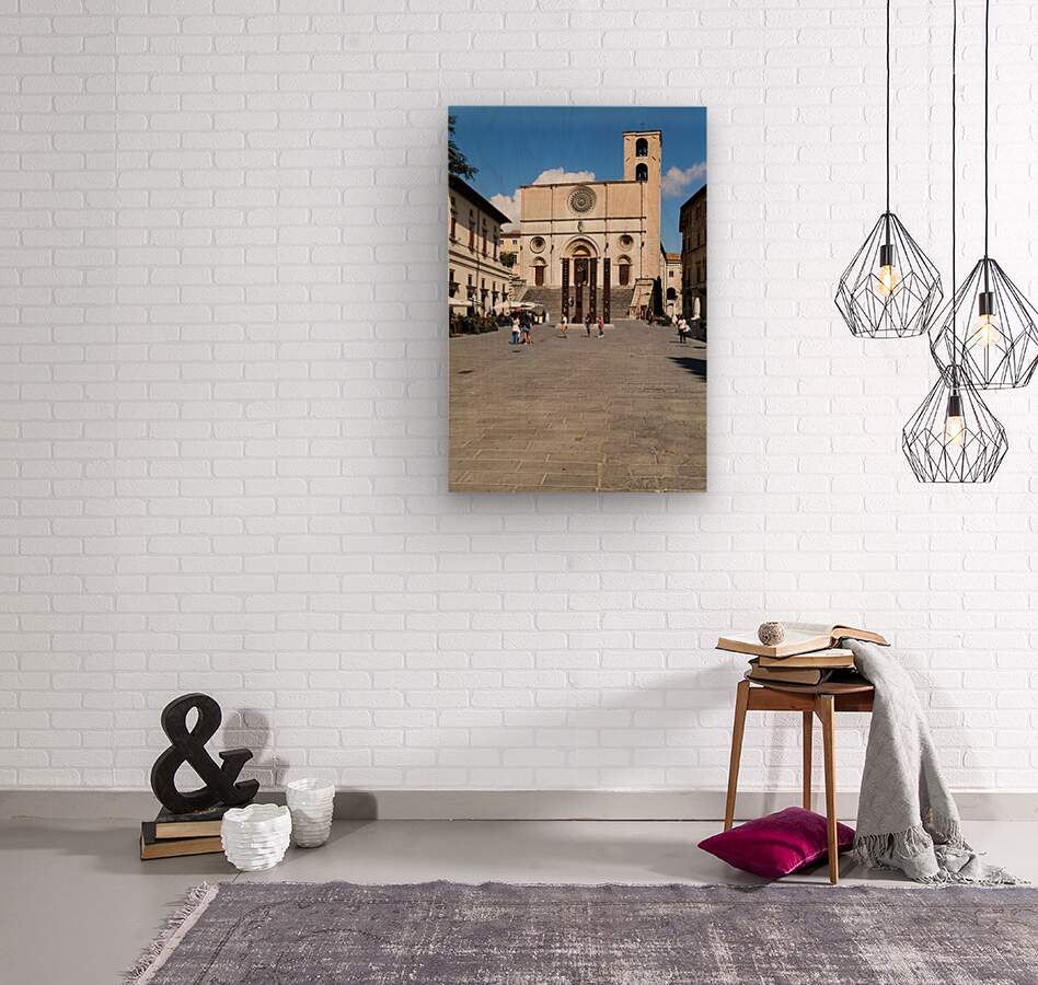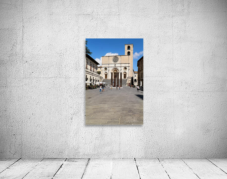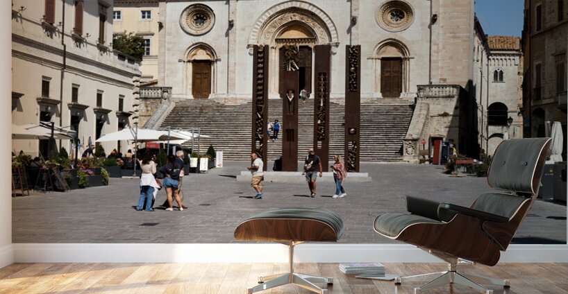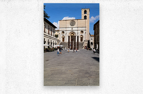 Todi Umbria Italy. Concattedrale della Santissima Annunziata. Cathedral. Piazza del Popolo. The statue Quattro Stele by Arnaldo Pomodoro