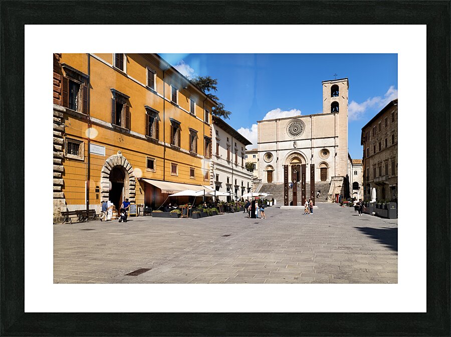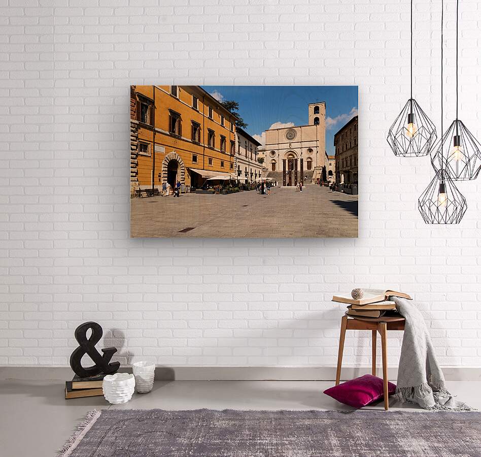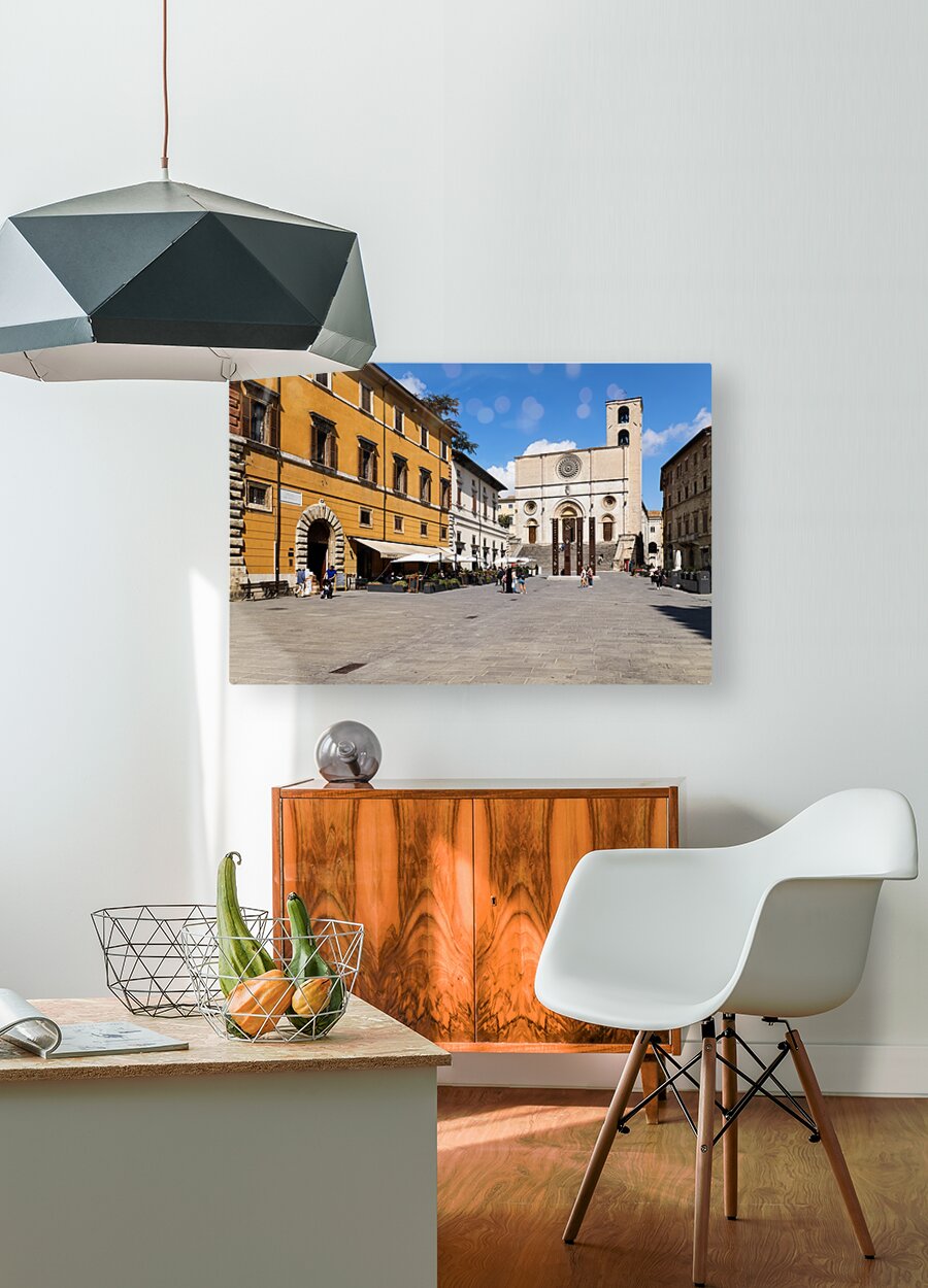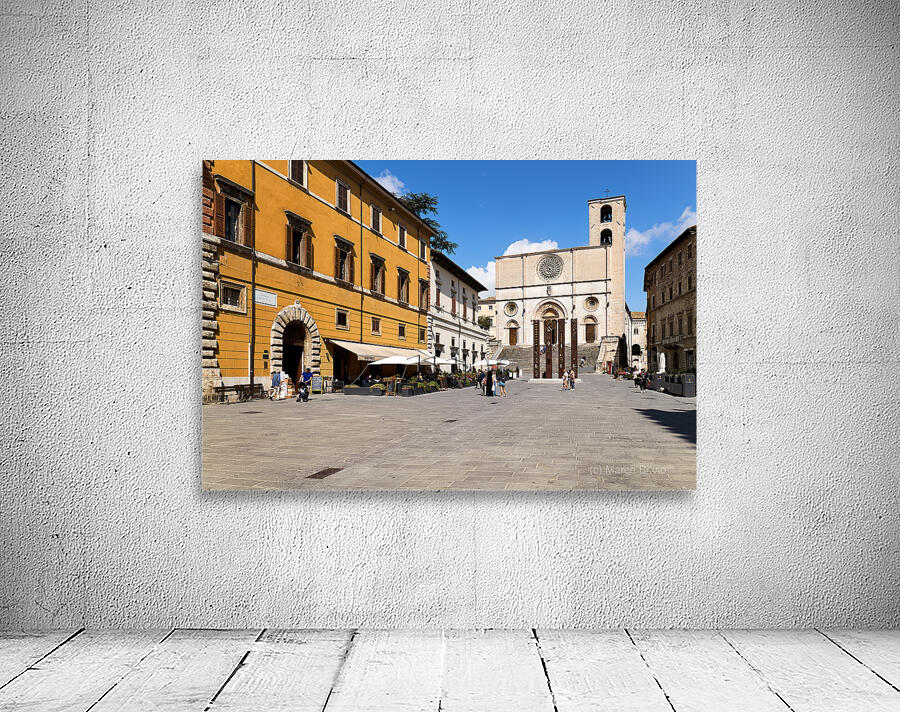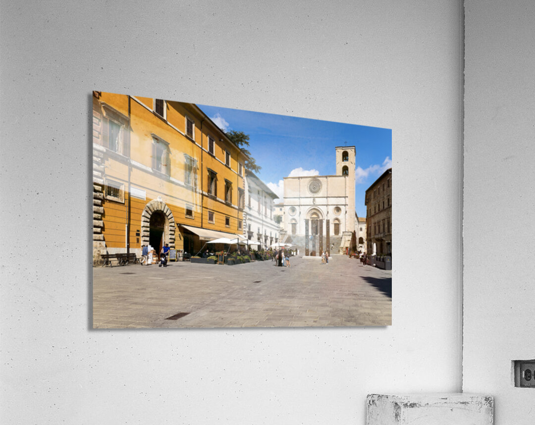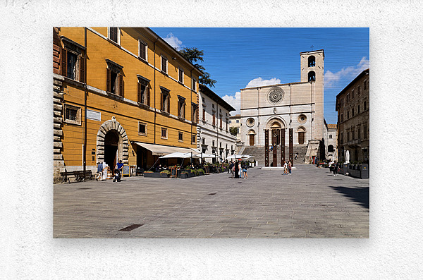 Todi Umbria Italy. Concattedrale della Santissima Annunziata. Cathedral. Piazza del Popolo. The statue Quattro Stele by Arnaldo Pomodoro